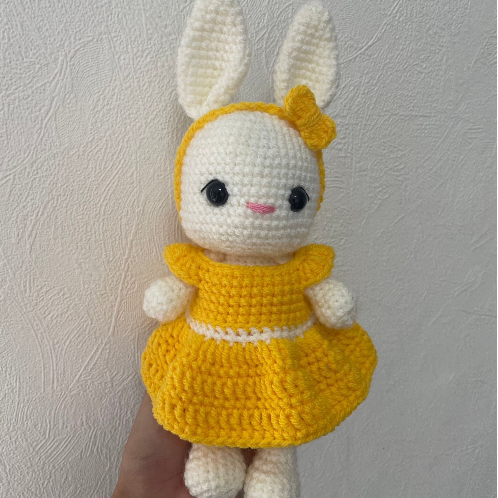 Cette peluche est réalisée à la main au crochet avec une laine fine layette, un mélange de coton et acrylique, choisie pour son rendu délicat et sa douceur. Leur format d’environ 22 cm est idéal pour être manipulé facilement par les enfants comme pour décorer une chambre.